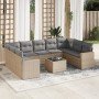 Set de sofás de jardín 10 pzas con cojines ratán sintético gris