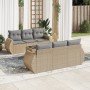 Set de comedor de jardín 7 pzas y cojines ratán sintético negro