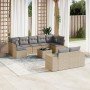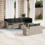Set muebles jardín 9 pzas y cojines ratán sintético gris claro