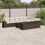 Set de sofás de jardín 10 pzas y cojines ratán sintético marrón