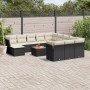 Set de sofás de jardín y cojines 13 pzas ratán sintético negro