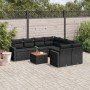 Set de sofás de jardín 9 pzas con cojines ratán sintético beige