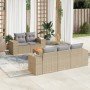 Set de sofás de jardín 6 piezas y cojines ratán sintético negro