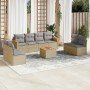 Juego de sofás de jardín con cojines beige 8 pzas ratán PE