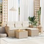 Juego de sofás jardín con cojines beige mezcla 4 pzas ratán PE
