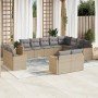 Set sofás de jardín con cojines 13 pzas ratán sintético beige