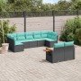 Set de sofás de jardín 9 pzas con cojines ratán sintético gris
