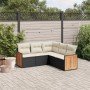 Set de muebles de jardín 5 pzas y cojines ratán sintético negro