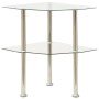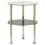 Esta elegante mesa auxiliar de 2 niveles añade un aspecto moderno y mejora la decoración existente en tu hogar. La mesa está hecha de vidrio templado con un acabado pulido y tubo de acero inoxidable, lo que la hace estable y duradera. El robusto tablero de la mesa se puede utilizar para poner tus bebidas o cualquier otro artículo. También hay espacio adicional entre la mesa y el estante para guardar tus básicos. También sirve como mesa auxiliar, soporte de teléfono y mesa de sofá, etc.
