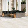 Set de sofás de jardín 10 pzas con cojines ratán sintético gris