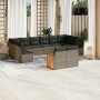 Este conjunto de sofás de jardín es el complemento perfecto para el jardín, terraza o patio, ya que proporciona un espacio confortable y acogedor para charlar con familiares y amigos o simplemente relajarte y disfrutar del aire libre. Material duradero: El ratán PE, también conocido como ratán sintético, es un material sintético resistente y de bajo mantenimiento que se parece al ratán natural. Es ligero, fácil de limpiar y se usa comúnmente para muebles de exterior debido a su durabilidad y propiedades resistentes a la intemperie.Experiencia de asiento cómoda: Estos muebles de exterior, completos con cojines acolchados gruesos, ofrecen una experiencia de asiento cómoda.Superficie estable y fácil de limpiar: Esta mesa de jardín tiene una superficie de madera de acacia que es resistente, duradero y fácil de limpiar con un paño húmedo.Funda desenfundable y lavable: Estos cojines de asiento cuentan con fundas desenfundables para facilitar el lavado y mantenimiento.Diseño modular: Este conjunto de muebles de exterior tiene un diseño modular, por lo que es completamente flexible y fácil de mover, para que puedas crear una disposición de muebles de exterior personalizada. Información útil:Para asegurarte de que tus muebles de exterior se mantengan hermosos, recomendamos protegerlos con una funda impermeable.