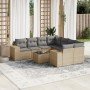 Set de sofás de jardín 9 pzas con cojines ratán sintético beige