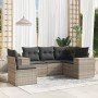 Set de sofás de jardín 6 piezas y cojines ratán sintético negro