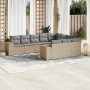 Set de sofás de jardín 11pzas con cojines ratán sintético beige