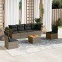 Set de comedor de jardín 7 pzas y cojines ratán sintético negro