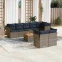 Set de sofás de jardín 9 pzas con cojines ratán sintético gris