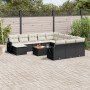 Set de sofás de jardín y cojines 13 pzas ratán sintético negro