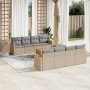 Set de sofás de jardín 9 pzas con cojines ratán sintético beige