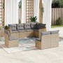Set de sofás de jardín 8 piezas y cojines ratán sintético negro