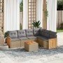 Set de sofás de jardín 6 piezas y cojines ratán sintético negro