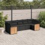 Set de sofás de jardín 7 piezas con cojines ratán PE gris