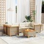 Set de sofás de jardín 7 pzas con cojines ratán sintético negro