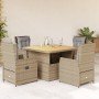 Set comedor de jardín 5 pzas con cojines ratán sintético beige