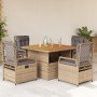 Set comedor de jardín 5 piezas con cojines ratán sintético gris