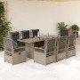 Set comedor de jardín 9 pzas con cojines ratán sintético beige