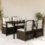 Set de comedor de jardín 7 pzas y cojines ratán sintético negro