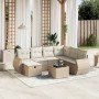 Set sofás de jardín 7 piezas y cojines ratán sintético beige