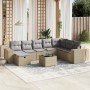 Set de sofás de jardín 8 piezas y cojines ratán sintético negro