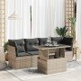 Este conjunto de sofás de jardín es el complemento perfecto para el jardín, terraza o patio, ya que proporciona un espacio confortable y acogedor para charlar con familiares y amigos o simplemente relajarte y disfrutar del aire libre. Material duradero: El ratán PE, también conocido como ratán sintético, es un material sintético resistente y de bajo mantenimiento que se parece al ratán natural. Es ligero, fácil de limpiar y se usa comúnmente para muebles de exterior debido a su durabilidad y propiedades resistentes a la intemperie.Tablero ajustable: El tablero de la mesa se puede levantar para que la mesa sea más alta, lo que transforma la mesa al aire libre de una mesa de café a una mesa de comedor. Es perfecto para invitar a invitados o comer al aire libre.Experiencia de asiento cómoda: Estos muebles de exterior, completos con cojines acolchados gruesos, ofrecen una experiencia de asiento cómoda.Funda desenfundable y lavable: Estos cojines de asiento cuentan con fundas desenfundables para facilitar el lavado y mantenimiento.Diseño modular: Este conjunto de muebles de exterior tiene un diseño modular, por lo que es completamente flexible y fácil de mover, para que puedas crear una disposición de muebles de exterior personalizada. Información útil:Para asegurarte de que tus muebles de exterior se mantengan hermosos, recomendamos protegerlos con una funda impermeable.