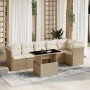 Set de sofás de jardín 7 pzas con cojines ratán sintético gris