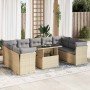 Juego de sofás jardín con cojines beige 10 pzas ratán sintético
