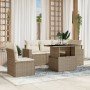 Set de sofás de jardín 6 piezas y cojines ratán sintético negro