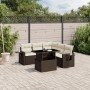 Set de sofás de jardín 6 pzas y cojines ratán sintético gris