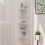 Este elegante estante esquinero de pared, que presenta la combinación perfecta de belleza y utilidad, es adecuado para el salón. Este estante de pared es un accesorio decorativo innovador con un diseño único y niveles de estante redondeados. Puedes almacenar artículos y exhibir tus adornos favoritos, como premios, libros, coleccionables, adornos, etc. La construcción de este estante colgante es resistente y duradera, lo que garantiza años de servicio. Elegante y refinado, este estante de exhibición aprovecha al máximo el espacio de la esquina.