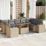Set de sofás de jardín 10 pzas cojines ratán sintético negro