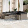 Set de sofás de jardín 10 pzas con cojines ratán sintético gris