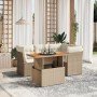 Este conjunto de sofás de jardín es el complemento perfecto para el jardín, terraza o patio, ya que proporciona un espacio confortable y acogedor para charlar con familiares y amigos o simplemente relajarte y disfrutar del aire libre. Material duradero: El ratán PE, también conocido como ratán sintético, es un material sintético resistente y de bajo mantenimiento que se parece al ratán natural. Es ligero, fácil de limpiar y se usa comúnmente para muebles de exterior debido a su durabilidad y propiedades resistentes a la intemperie.Tablero ajustable: El tablero de la mesa se puede levantar para que la mesa sea más alta, lo que transforma la mesa de jardín de una mesa de centro a una mesa de comedor. Es perfecta para invitar a invitados o comer al aire libre.Experiencia de asiento cómoda: Estos muebles de exterior, completos con cojines acolchados gruesos, ofrecen una experiencia de asiento cómoda.Funda desenfundable y lavable: Estos cojines de asiento cuentan con fundas desenfundables para facilitar el lavado y mantenimiento.Diseño modular: Este conjunto de muebles de exterior tiene un diseño modular, por lo que es completamente flexible y fácil de mover, para que puedas crear una disposición de muebles de exterior personalizada. Información útil:Para asegurarte de que tus muebles de exterior se mantengan hermosos, recomendamos protegerlos con una funda impermeable.