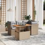 Juego de sofás jardín con cojines 5 pzas ratán sintético gris