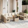 Set de sofás de jardín 11pzas con cojines ratán sintético beige