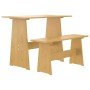 Mesa de comedor con banco REINE madera maciza pino marrón gris
