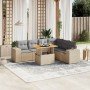 Set de comedor de jardín 7 pzas y cojines ratán sintético negro