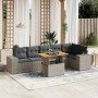 Set de sofás de jardín 7 piezas con cojines ratán PE gris