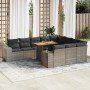 Set de sofás de jardín 11 pzas y cojines ratán sintético negro