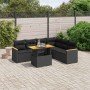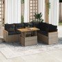 Set de sofás de jardín 7 piezas con cojines ratán PE gris