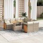 Set de sofás de jardín 9 pzas con cojines ratán sintético beige