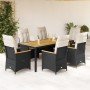Set de comedor de jardín 9 pzas y cojines ratán sintético negro